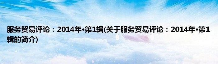 本文关于服务贸易评论:2014年·第1辑的简介就讲解完毕,希望对大家有所帮助。