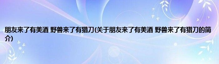 本文关于朋友来了有美酒,野兽来了有猎刀的简介就讲解完毕,希望对大家有所帮助。