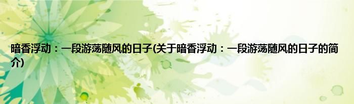 大家好,暗香浮动:一段游荡随风的日子,关于暗香浮动:一段游荡随风的日子的简介很多人还不知道,现在让我们一起来看看吧!