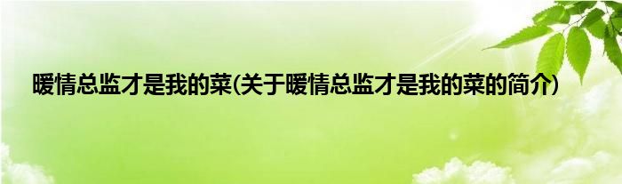 本文关于暖情总监才是我的菜的简介就讲解完毕,希望对大家有所帮助。