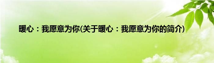 大家好,暖心:我愿意为你,关于暖心:我愿意为你的简介很多人还不知道,现在让我们一起来看看吧!