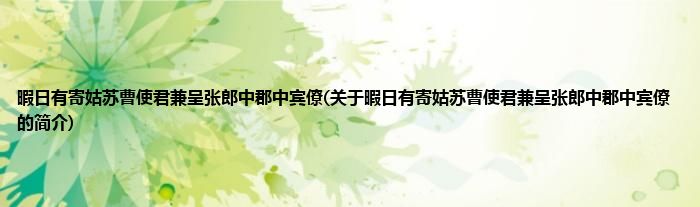 本文关于暇日有寄姑苏曹使君兼呈张郎中郡中宾僚的简介就讲解完毕,希望对大家有所帮助。