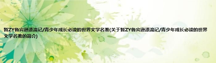 本文关于暂ZY鲁宾逊漂流记/青少年成长必读的世界文学名著的简介就讲解完毕,希望对大家有所帮助。