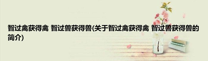 本文关于智过禽获得禽,智过兽获得兽的简介就讲解完毕,希望对大家有所帮助。