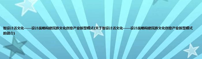 大家好,智设计活文化——设计战略构建民族文化创意产业新型模式,关于智设计活文化——设计战略构建民族文化创意产业新型模式的简介很多人还不知道,现在让我们一起来看看吧!
