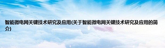 大家好,智能微电网关键技术研究及应用,关于智能微电网关键技术研究及应用的简介很多人还不知道,现在让我们一起来看看吧!