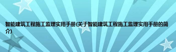 本文关于智能建筑工程施工监理实用手册的简介就讲解完毕,希望对大家有所帮助。