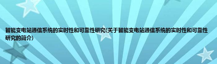 大家好,智能变电站通信系统的实时性和可靠性研究,关于智能变电站通信系统的实时性和可靠性研究的简介很多人还不知道,现在让我们一起来看看吧!