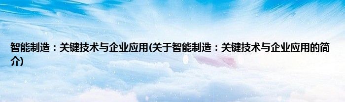 本文关于智能制造:关键技术与企业应用的简介就讲解完毕,希望对大家有所帮助。