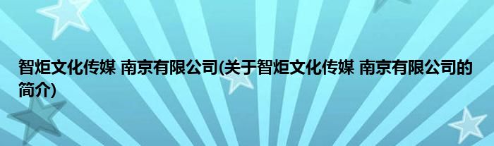 本文关于智炬文化传媒 南京有限公司的简介就讲解完毕,希望对大家有所帮助。