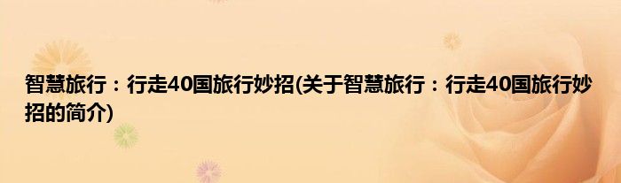 智慧旅行:行走40国旅行妙招(关于智慧旅行:行走40国旅行妙招的简介)