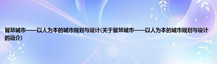 本文关于智慧城市——以人为本的城市规划与设计的简介就讲解完毕,希望对大家有所帮助。