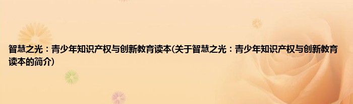 本文关于智慧之光:青少年知识产权与创新教育读本的简介就讲解完毕,希望对大家有所帮助。