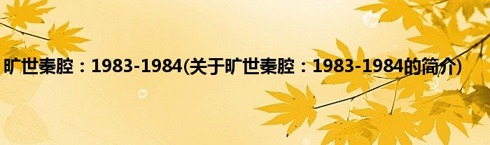 旷世秦腔:1983-1984(关于旷世秦腔:1983-1984的简介)