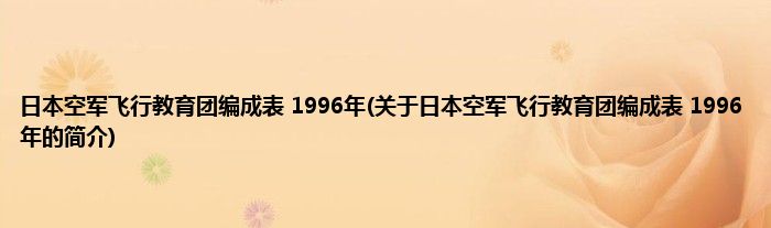 日本空军飞行教育团编成表 1996年(关于日本空军飞行教育团编成表 1996年的简介)