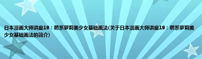 本文关于日本漫画大师讲座19:萌系萝莉美少女基础画法的简介就讲解完毕,希望对大家有所帮助。