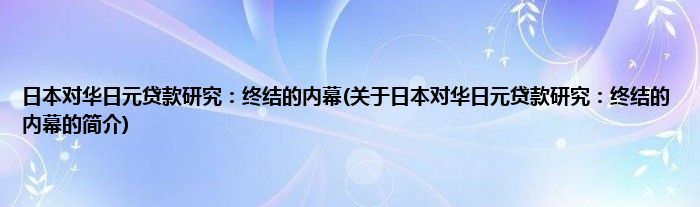 本文关于日本对华日元贷款研究:终结的内幕的简介就讲解完毕,希望对大家有所帮助。
