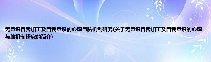 大家好,无意识自我加工及自我意识的心理与脑机制研究,关于无意识自我加工及自我意识的心理与脑机制研究的简介很多人还不知道,现在让我们一起来看看吧!