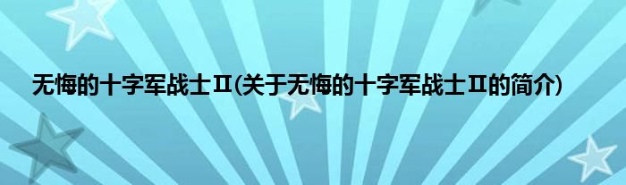 大家好,无悔的十字军战士Ⅱ,关于无悔的十字军战士Ⅱ的简介很多人还不知道,现在让我们一起来看看吧!