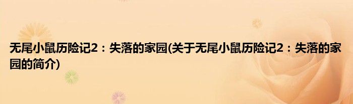 大家好,无尾小鼠历险记2:失落的家园,关于无尾小鼠历险记2:失落的家园的简介很多人还不知道,现在让我们一起来看看吧!