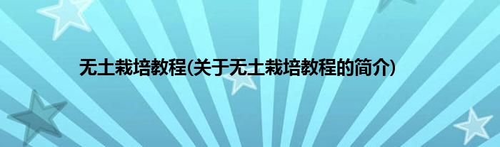 大家好,无土栽培教程,关于无土栽培教程的简介很多人还不知道,现在让我们一起来看看吧!
