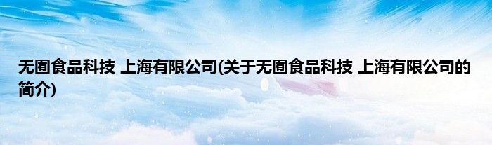 本文关于无囿食品科技 上海有限公司的简介就讲解完毕,希望对大家有所帮助。