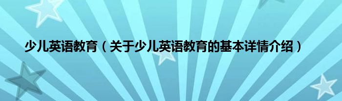 本文关于少儿英语教育的基本详情介绍就讲解完毕,希望对大家有所帮助。