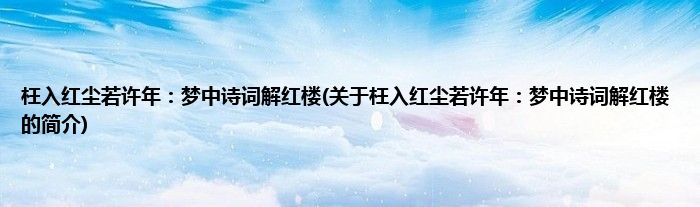 本文关于枉入红尘若许年:梦中诗词解红楼的简介就讲解完毕,希望对大家有所帮助。