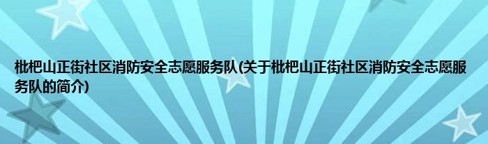 1、 枇杷山正街社区消防安全志愿服务队是由枇杷山正街社区志愿服务队领导下的志愿团体。