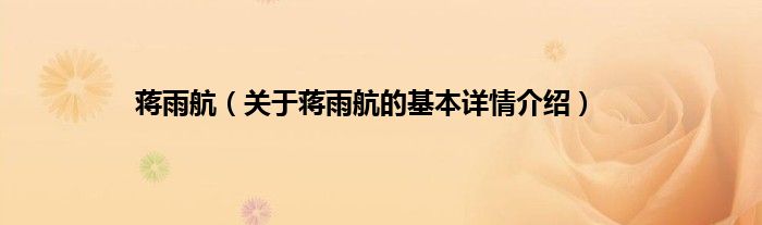 蒋雨航(关于蒋雨航的基本详情介绍)