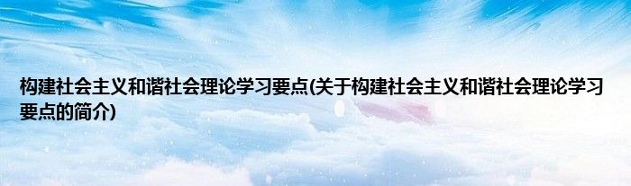 构建社会主义和谐社会理论学习要点(关于构建社会主义和谐社会理论学习要点的简介)
