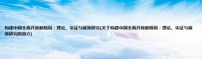 大家好,构建中国全面开放新格局:理论、实证与政策研究,关于构建中国全面开放新格局:理论、实证与政策研究的简介很多人还不知道,现在让我们一起来看看吧!