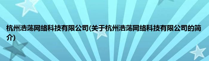 本文关于杭州浩荡网络科技有限公司的简介就讲解完毕,希望对大家有所帮助。