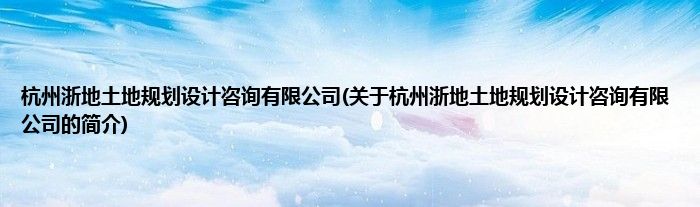 本文关于杭州浙地土地规划设计咨询有限公司的简介就讲解完毕,希望对大家有所帮助。