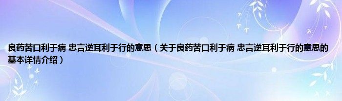本文关于良药苦口利于病 忠言逆耳利于行的意思的基本详情介绍就讲解完毕,希望对大家有所帮助。