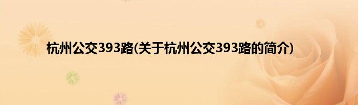 本文关于杭州公交393路的简介就讲解完毕,希望对大家有所帮助。