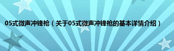 05式微声冲锋枪(关于05式微声冲锋枪的基本详情介绍)