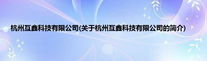本文关于杭州互鑫科技有限公司的简介就讲解完毕,希望对大家有所帮助。