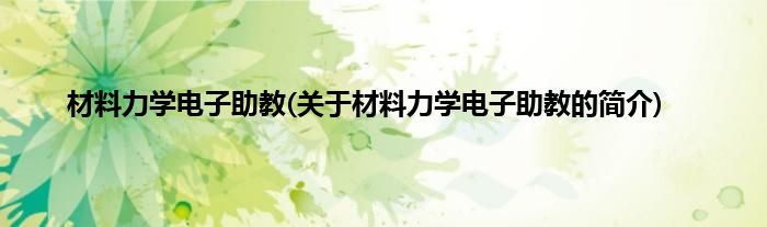 大家好,材料力学电子助教,关于材料力学电子助教的简介很多人还不知道,现在让我们一起来看看吧!