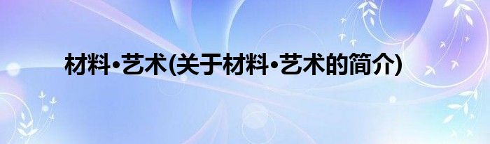大家好,材料·艺术,关于材料·艺术的简介很多人还不知道,现在让我们一起来看看吧!