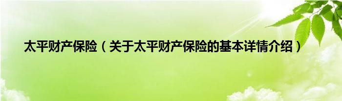 本文关于太平财产保险的基本详情介绍就讲解完毕,希望对大家有所帮助。