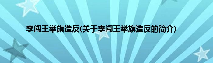 本文关于李闯王举旗造反的简介就讲解完毕,希望对大家有所帮助。