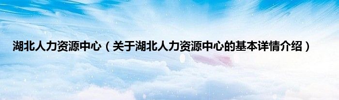 湖北人力资源中心(关于湖北人力资源中心的基本详情介绍)