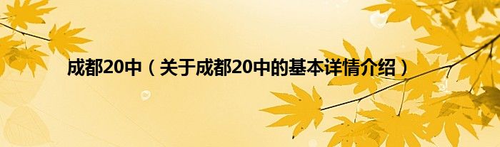 本文关于成都20中的基本详情介绍就讲解完毕,希望对大家有所帮助。