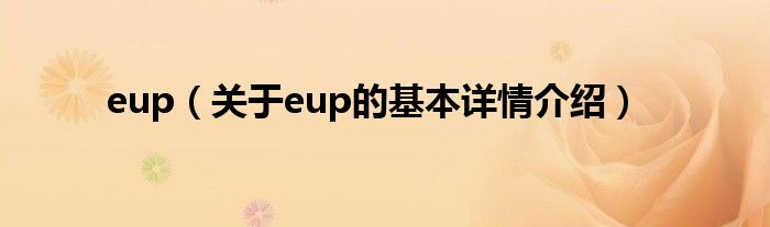 大家好我是小蝌蚪,eup,关于eup的基本详情介绍很多人还不知道,那么现在让我们一起来看看吧!