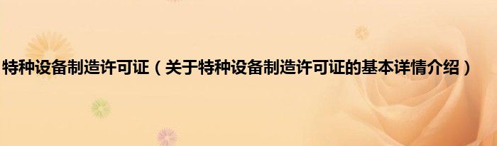 本文关于特种设备制造许可证的基本详情介绍就讲解完毕,希望对大家有所帮助。