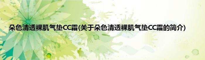 大家好,朵色清透裸肌气垫CC霜,关于朵色清透裸肌气垫CC霜的简介很多人还不知道,现在让我们一起来看看吧!