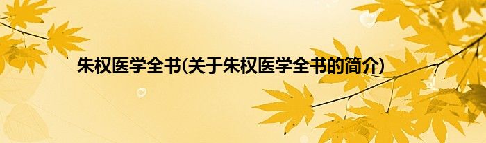 1、 《朱权医学全书》是中医古籍出版社出版的图书,作者是朱权,叶明花。