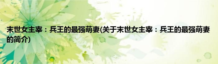 本文关于末世女主宰:兵王的最强萌妻的简介就讲解完毕,希望对大家有所帮助。