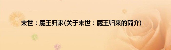 本文关于末世:魔王归来的简介就讲解完毕,希望对大家有所帮助。